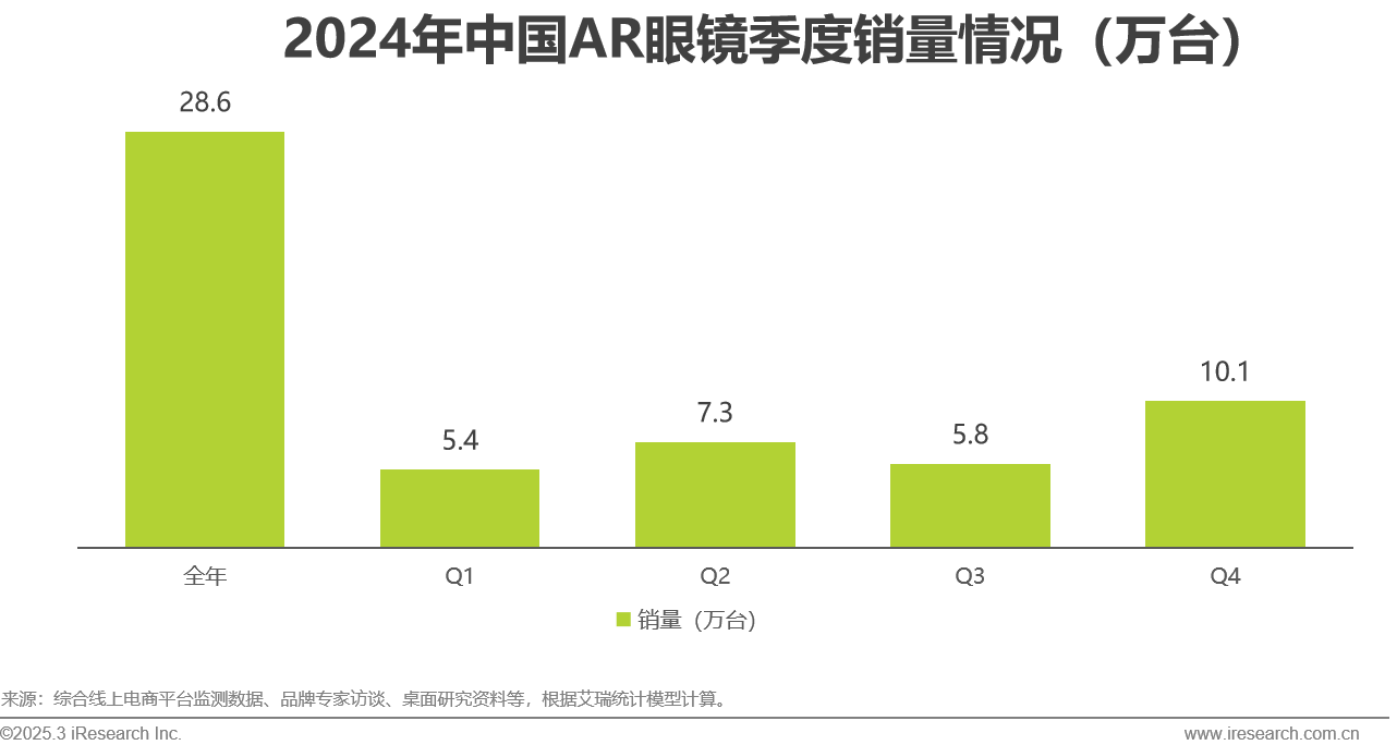 艾瑞咨询:2024年全年AR眼镜销量达到28.6万台 预计今年将会迎来下一个销量高峰