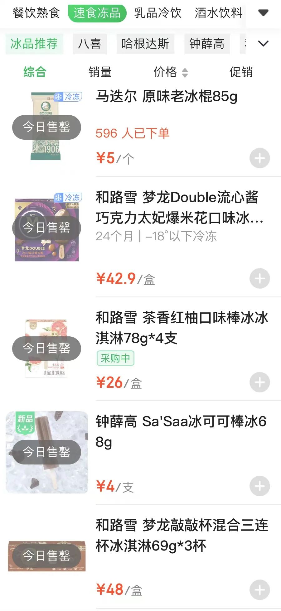 记者搜索某大型商超线上购物小程序发现,当日有多达30多款雪糕显示“售罄”。