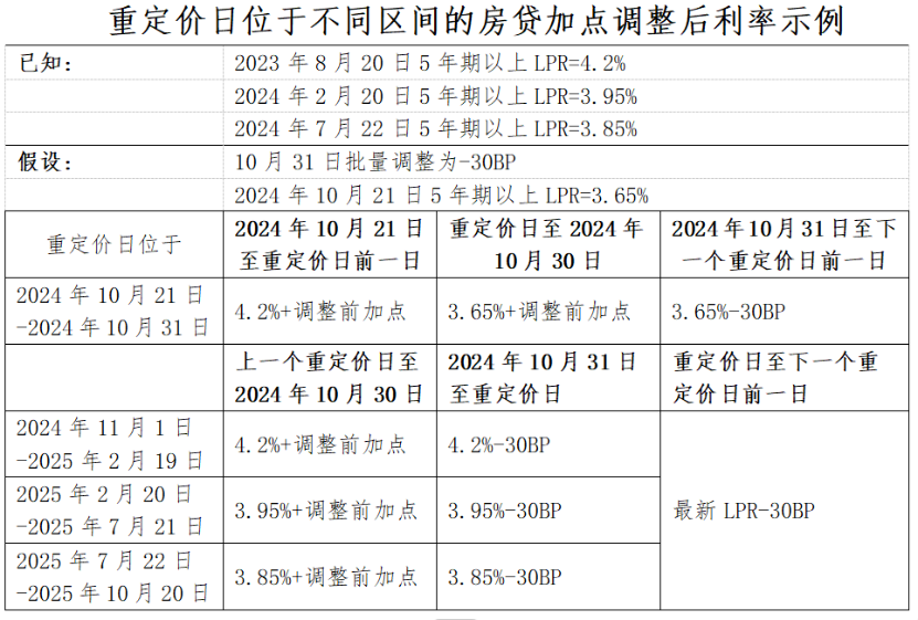 重定价日为10月21日至10月31日的,调整后的利率为3.35%(当时的LPR3.65%-0.3%)。