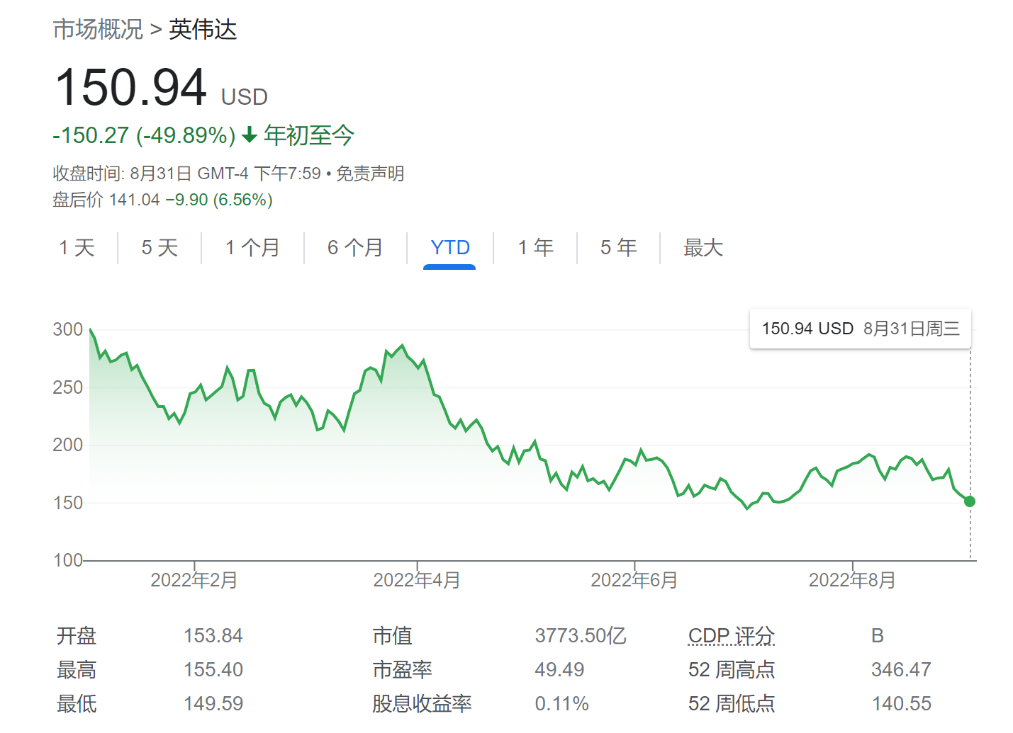 该消息公开后,英伟达股价在盘后下跌超6%,而今年迄今公司股价跌幅已接近50%。