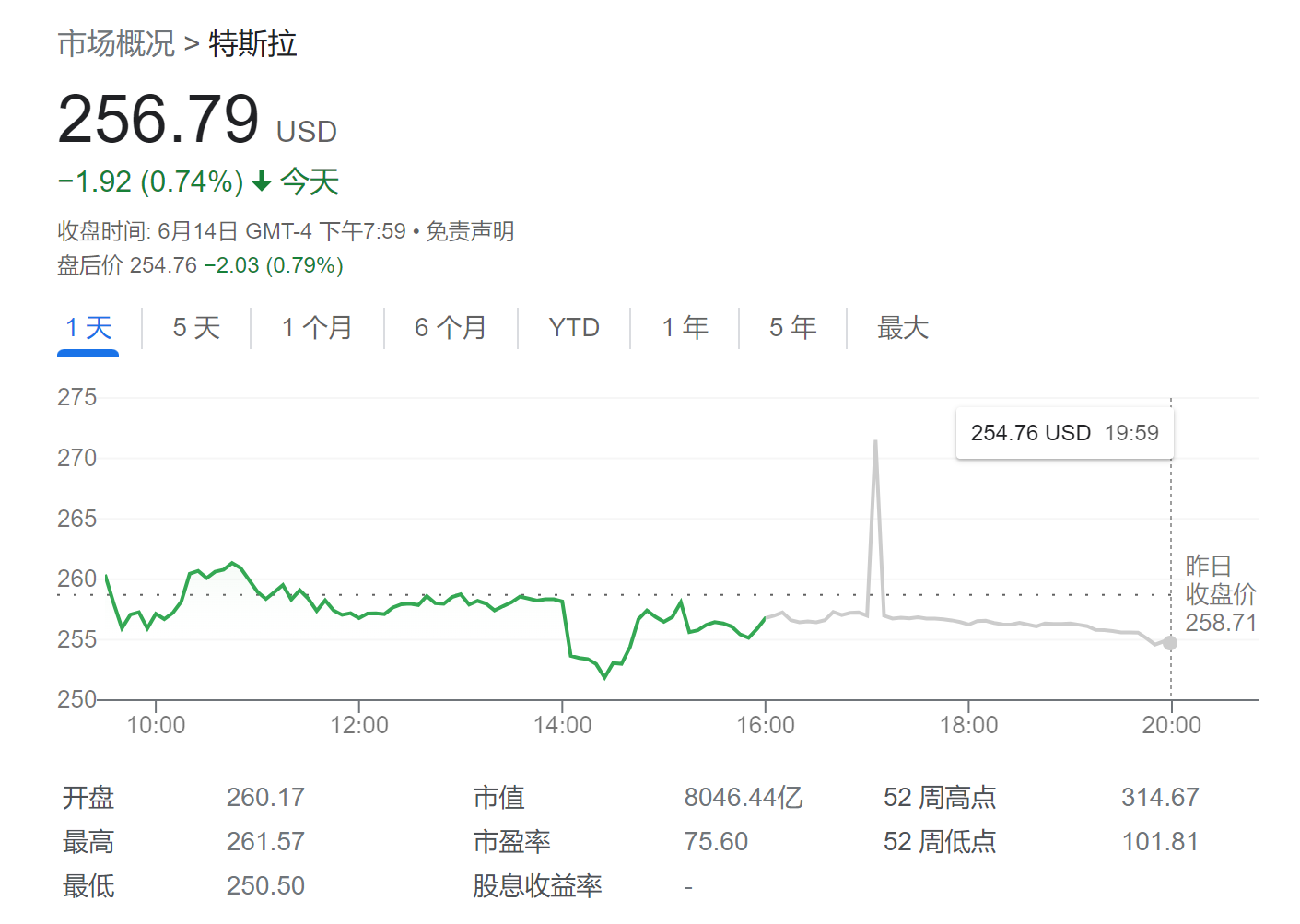 特拉斯的(Tesla)“十三连涨”终于止步于周三了(14日)。截至收盘,该股跌0.74%,报256.79美元,结束了连续13个交易日的创纪录上涨,而这一波涨势也让特斯拉的市值增加了逾2000亿美元。