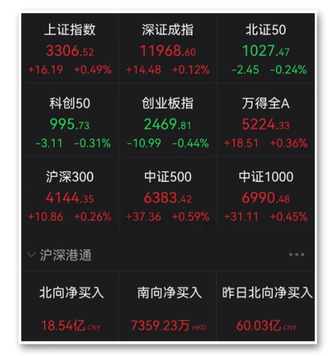 2月21日A股震荡分化,大盘蓝筹的表现继续优于小盘成长股,沪指成功站上3300点,创业板指出现调整。截至收盘,沪指涨0.49%,深成指涨0.12%,创业板指跌0.44%。北向资金全天净买入18.54亿元,其中沪股通净买入26.41亿元,深股通净卖出7.87亿元。