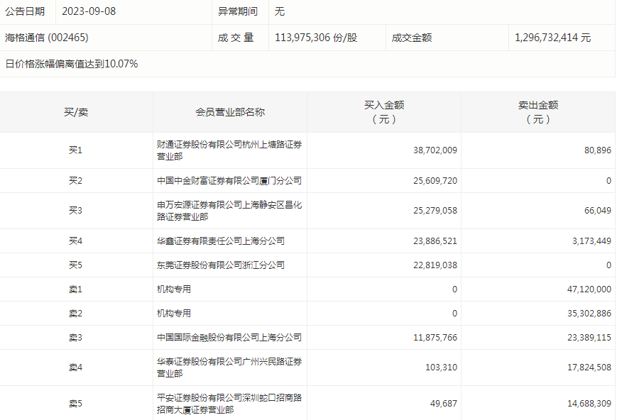 海格通信今天涨停。盘后数据显示,2个机构出现在龙虎榜单上,合计净卖出8242.29万元;财通证券股份有限公司杭州上塘路证券营业部买入3870.2万元,同时卖出8.09万元;中国国际金融股份有限公司上海分公司买入1187.58万元,同时卖出2338.91万元。