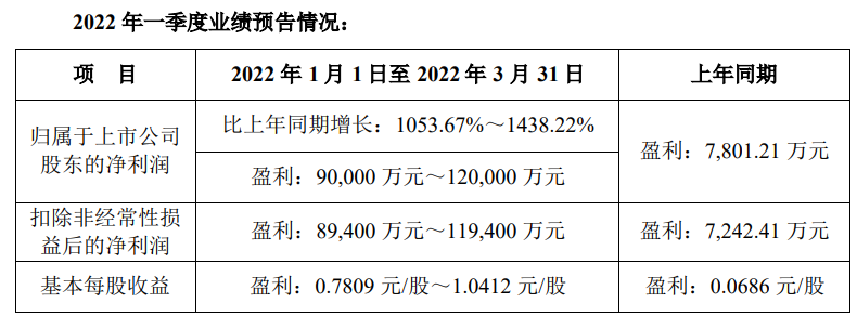 一季度净利同比预增超10倍