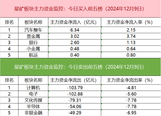 从主力板块资金监控数据来看,汽车整车板块主力资金净流入居首。