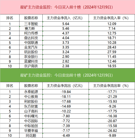 从个股主力资金监控数据来看,主力资金净流入前十的个股所属板块较为杂乱,三丰智能流入居首。