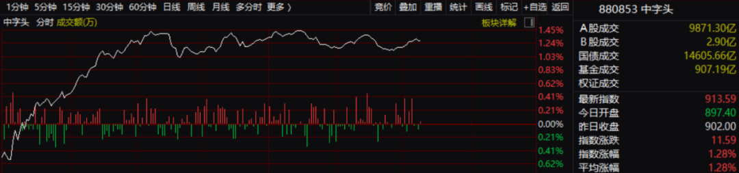 银行板块的劲爆“演出”也将中特估带飞,中字头指数要明显强于大盘。