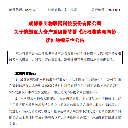截至发稿,四川已有秦川物联、运机集团2家上市公司发布并购事项公告。