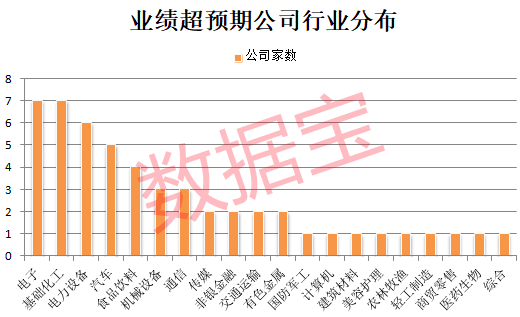 据证券时报·数据宝统计,在上市公司发布一季报、业绩快报、预告之后,券商研报给予“超预期”评价的公司有52家。分行业看,电子、基础化工、电力设备、汽车、食品饮料行业入围公司数量居前,分别有7家、7家、6家、5家、4家。