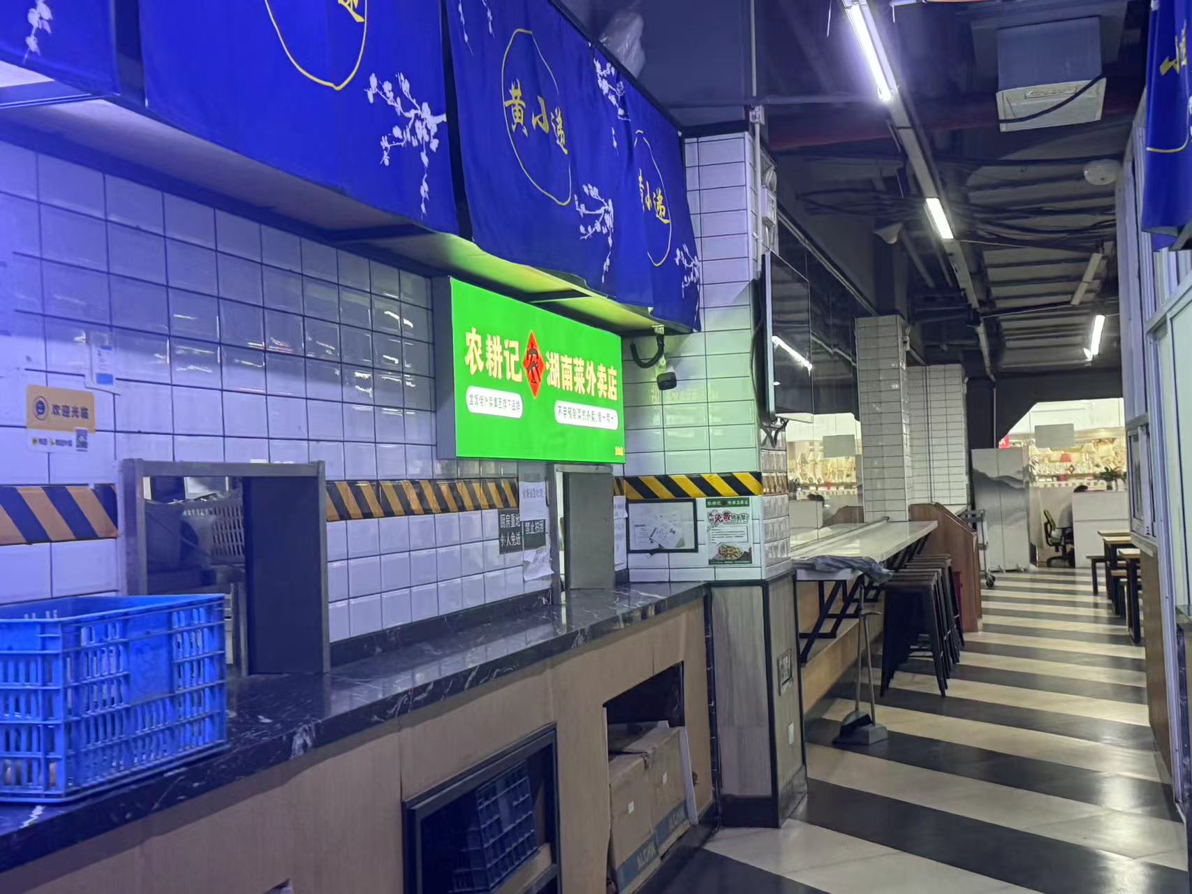 餐品的品类较多,已经入驻的包括米饭套餐、甜品、鸭脖等。偶有外卖小哥出入取餐,没有堂食顾客。