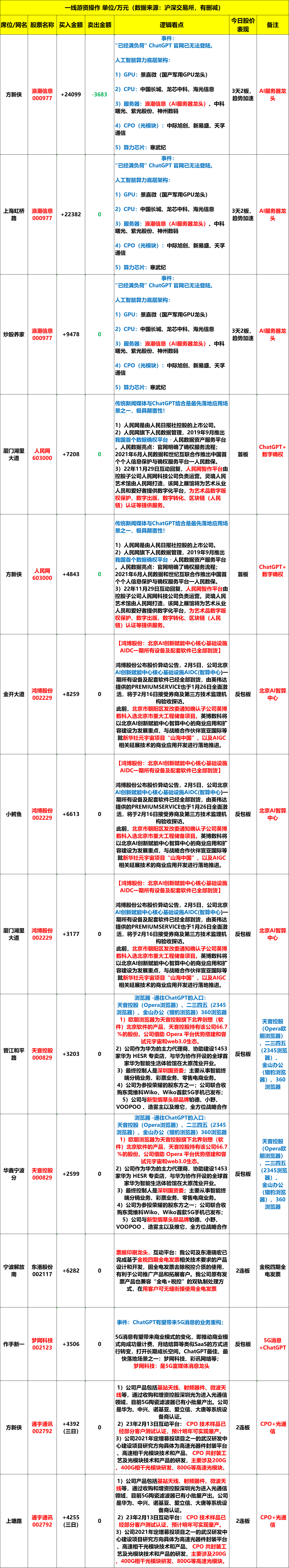 2023年2月15日,周三,龙虎榜解析。