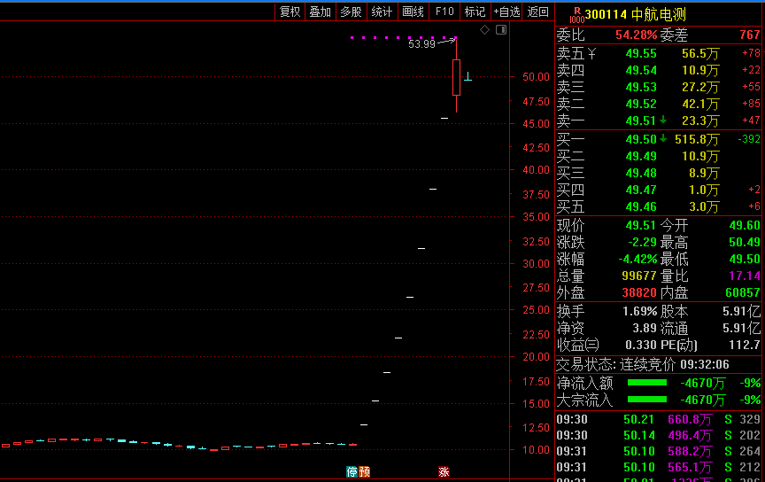 2月15日早盘,中航电测低开。截至发稿报49.51元,跌4.42%,成交金额超8亿元。