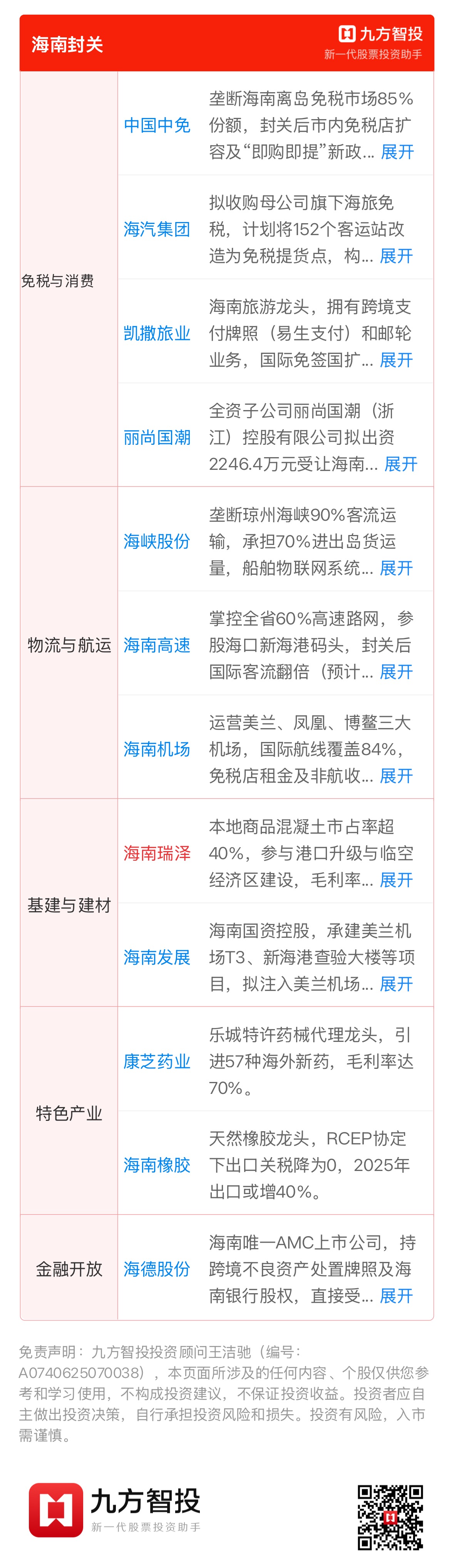 11月26日,海南股反复活跃,海南瑞泽、海南海药双双2连板,罗牛山、神农种业、海汽集团等跟涨。海南自由贸易港将于今年12月18日正式启动全岛封关运作。