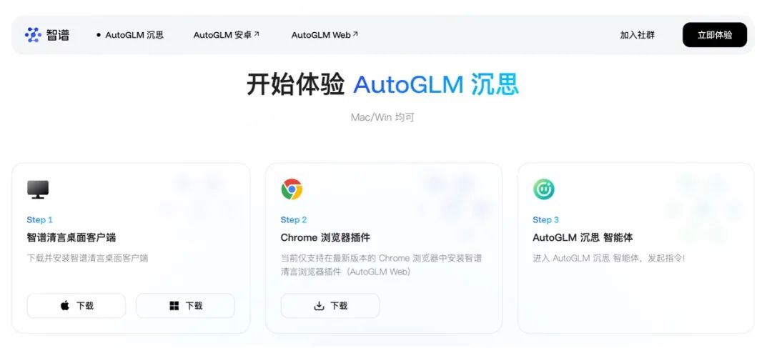 目前,AutoGLM沉思在智谱清言PC客户端上线,用户可免费体验其研究能力和操作能力。根据官方指引,下载并安装智谱清言桌面客户端并在最新版本的Chrome浏览器中安装智谱清言浏览器插件后,进入AutoGLM沉思智能体发起指令,并可让其协助完成一系列复杂任务。