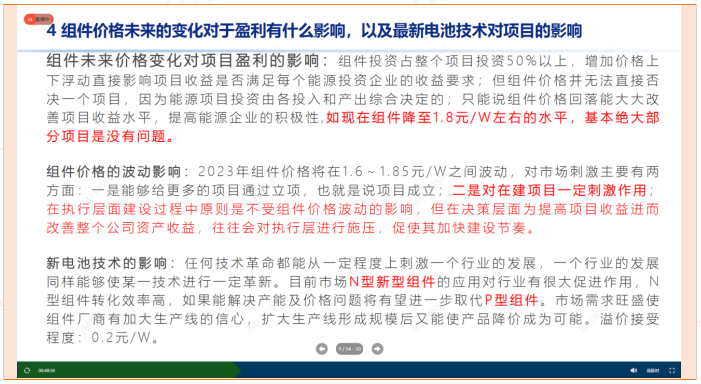 4、组件价格未来变化对于盈利的影响,以及N型电池技术的影响;
