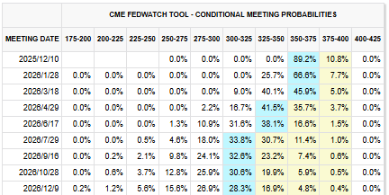 短期内,投资者也预计美联储本月会议会降息。利率降低通常有利于黄金和白银,因为它们不会产生利息。利率期货市场当前的最新定价显示,交易员们目前押注美联储12月会议降息25个基点的概率超过90%。
