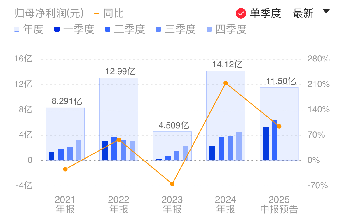 在2025年第二季度,澜起科技预计实现营业收入约14.11亿元,同比增长约52.12%,环比增长约15.47%;实现归属于母公司所有者的净利润5.75亿元-6.75亿元,同比增长55.51%-82.56%,环比增长9.46%-28.49%。