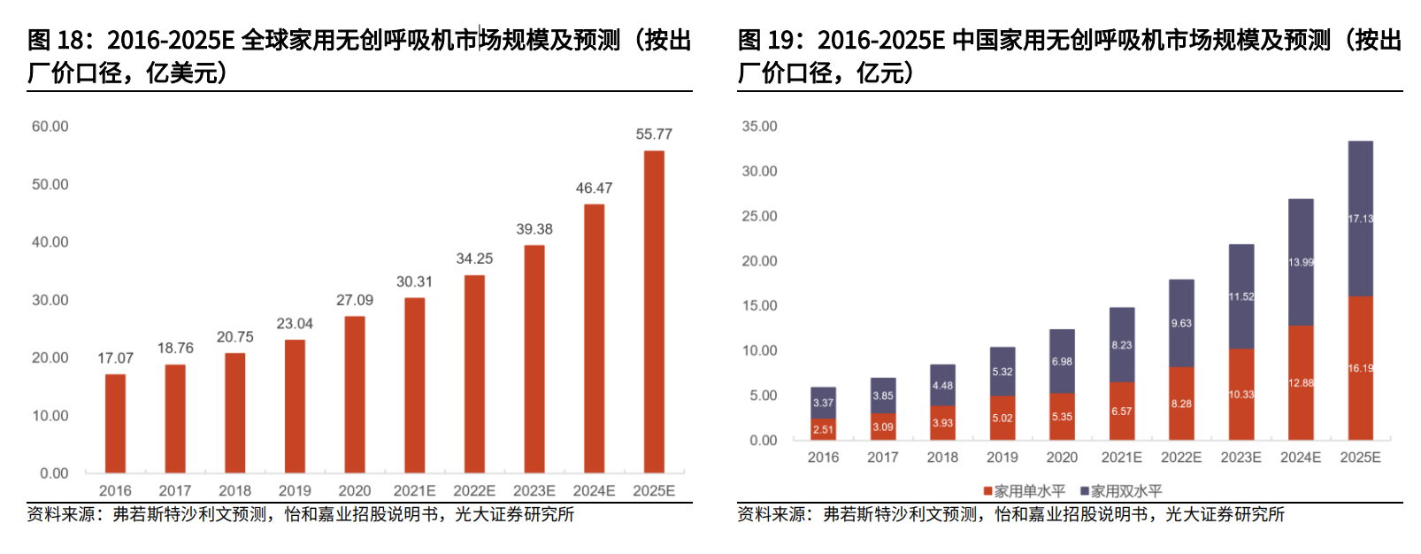 中信建投分析师贺菊颖12月25日研报指出,以COPD和OSA为主的呼吸健康疾病患者人数的增长以及渗透率的提升,驱动全球家用无创呼吸机市场规模高速增长。根据弗若斯特沙利文的数据,全球家用无创呼吸机市场规模将从2020年的27亿美元增长至2025年的56亿美元,CAGR为16%,中国市场规模有望从2020年的12亿元增长至2025年的33亿元,CAGR为22%。