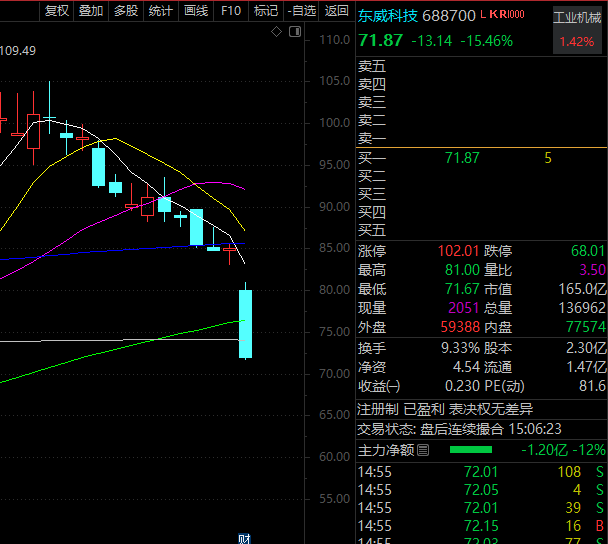 在此消息影响下,今天该股低开低走,收盘跌超15%,市值165亿元。资料显示,东威科技真空镀膜设备已制造成功并基本调试完成,产品优良,已与客户签署合同并收取预付款,根据客户情况与新能源镀膜设备配套发货。中金公司在研报中指出,三季度复合集流体行业有望迎来密集催化,设备龙头或将率先受益。
