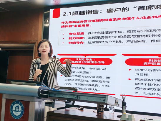 2025年11月6日,招商证券国家级投资者教育基地走进暨南大学深圳校区,为105名金融科技专业研一学生量身打造《财富顾问职业全景与实战指南》专题课程。招商证券财富管理部总经理助理辛欣倾情主讲,以行业前瞻洞察结合实战干货分享,为即将踏入金融领域的学子们清晰勾勒职业成长路径,点亮财富管理职业新航向。