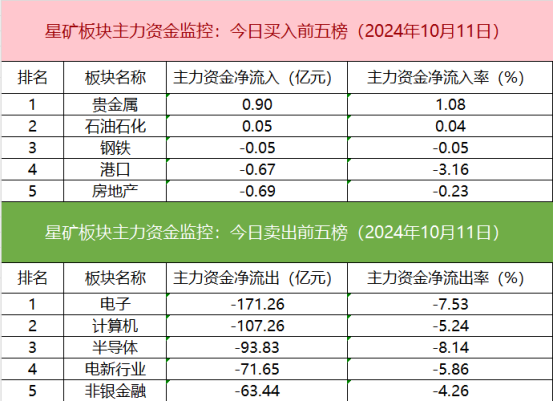 从主力板块资金监控数据来看,贵金属板块主力资金净流入居首。