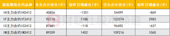 ①IF期指主力合约空头加仓近3000手,加仓数量明显大于多头。