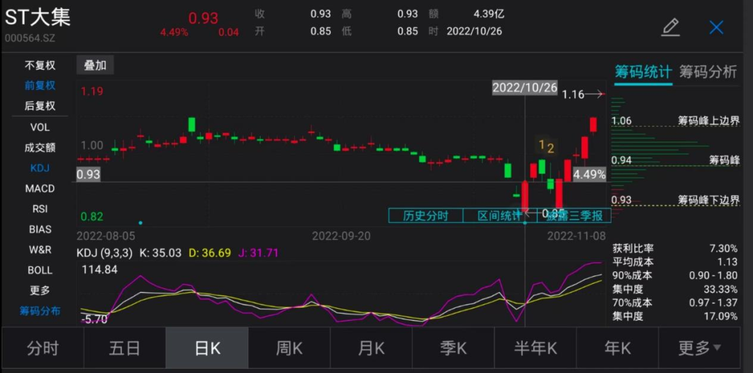 在公告与新供销基金签订战略合作框架协议当日,即10月26日,ST大集股价涨停收盘,10月27日继续涨停,11月4日、11月7日、11月8日走出三连板行情。
