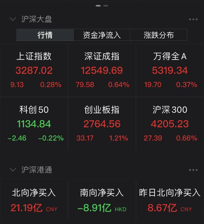 17日上午收盘,上证指数上涨0.28%,深证成指上涨0.64%,创业板指上涨1.21%,北向资金净流入21.19亿元。