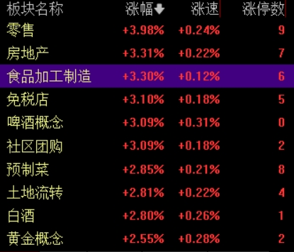 12月11日早盘,大消费板块盘中再度活跃,多股涨停。截至发稿,零售、免税店、啤酒概念、黄金概念等板块涨幅居前。