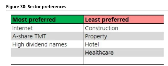 在当前环境下,资金流动和创新可能仍是短期内推动股市表现的更重要因素。因此,瑞银在行业选择上继续采用杠铃策略 —— 偏好精选的互联网和科技股,以及高股息股(图 30 和 31)。