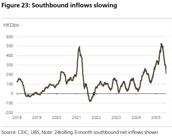 3)瑞银对港股和中国股市整体维持正面看法,并认为鉴于具有吸引力的估值(尤其是与人工智能相关的科技股),“逢低买入” 将获得有力支撑,这可能吸引南向资金流入(尽管低于上半年)和潜在的外资流入。