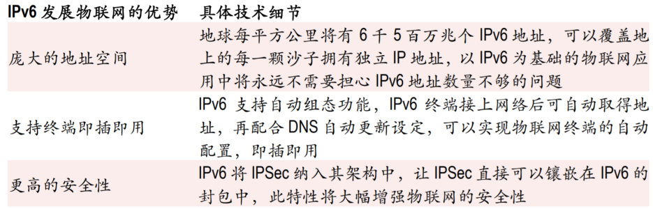 IPv6是物联网发展的重要基础建设,除此之外IPv6也体统服务质量保证(QualityofService)机制,提供顺畅、有秩序的网络传输,能将网络资源分级与分类,借助通过的流量控管保持网络传输的顺畅。