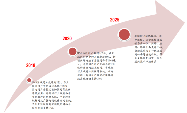 IPv6地址作为下一代互联网的技术基础。由于下一代互联网可以支撑包括PC、智能移动终端、智能家具在内的众多硬件设施,因此将对未来我国物联网、车联网、人工智能等新一代信息技术产业发展产生重大促进作用。