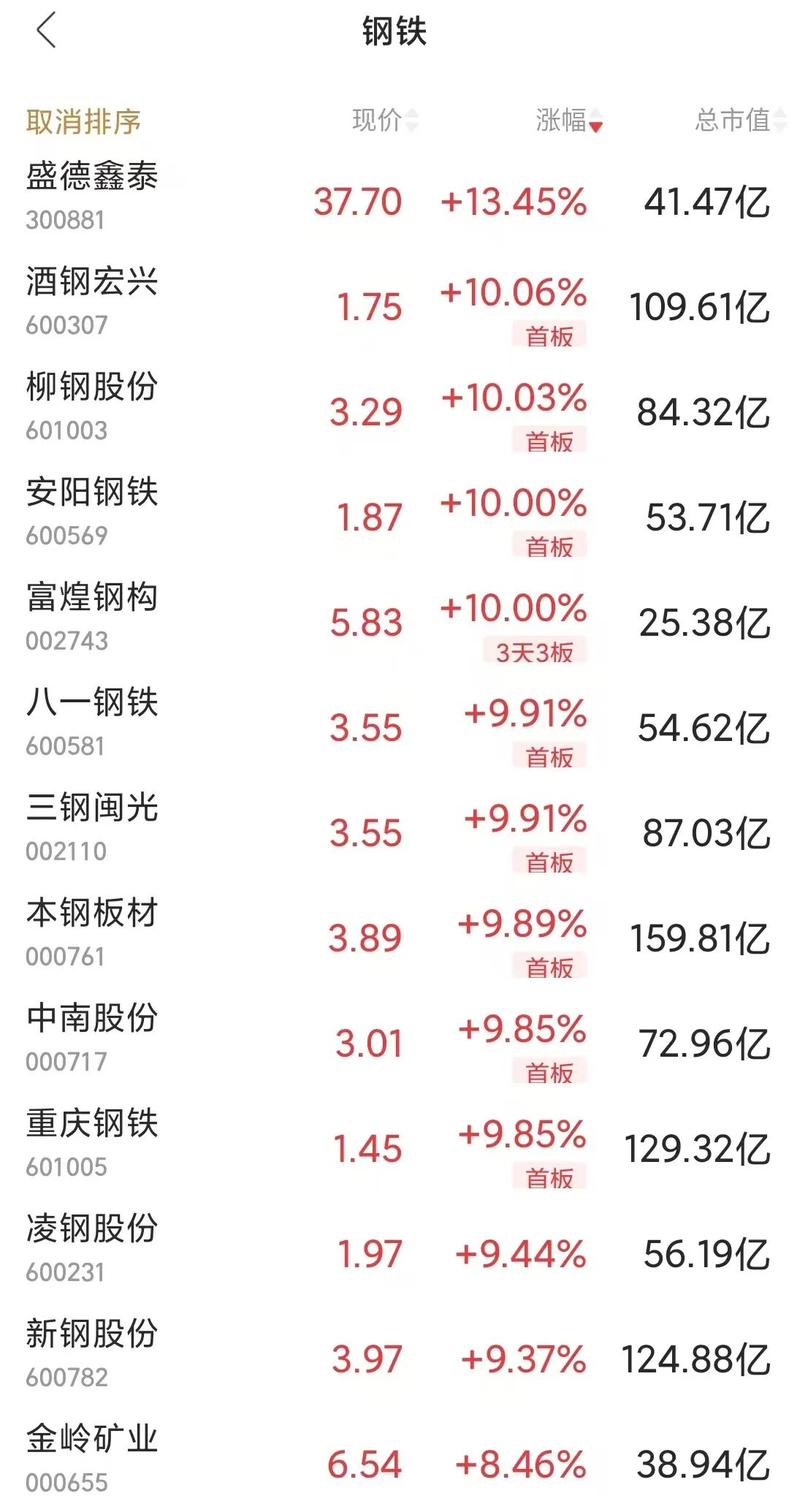 钢铁股掀涨停潮