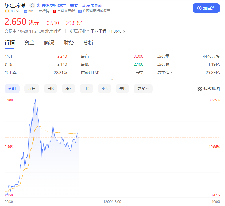 东江环保港股亦大涨,盘中涨幅一度超过40%。截至发稿,该股涨超20%。