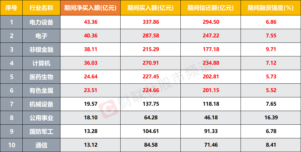 融资客节后频出手,重点增持行业一览
