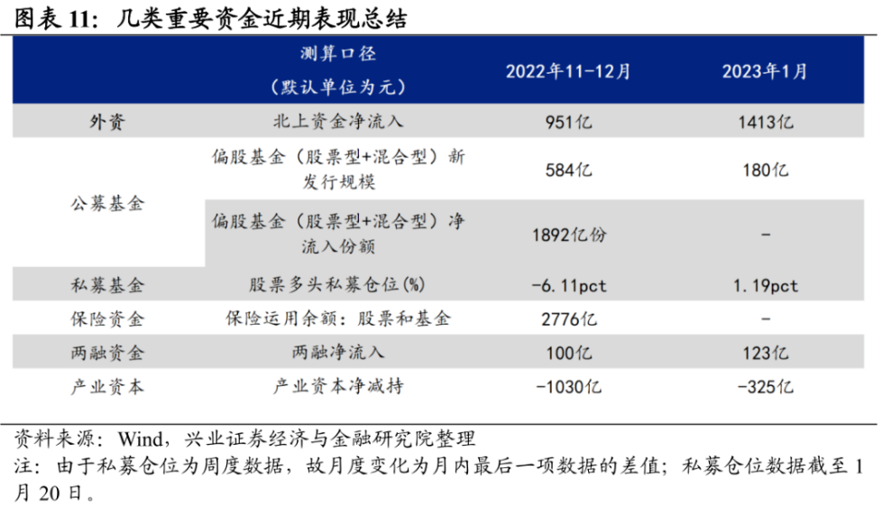 选取公募、私募、险资、两融、产业资本这五类内资动向来看,据兴业证券近日研报统计,