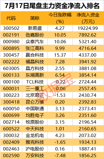 个股方面,尾盘有8股流入超3000万元。新易盛一股独大,尾盘净流入达到1.92亿元。该股是CPO龙头之一,公司上周在互动平台表示,800G光模块产品已实现小批量出货,具体的客户信息涉及公司商业秘密不便披露。