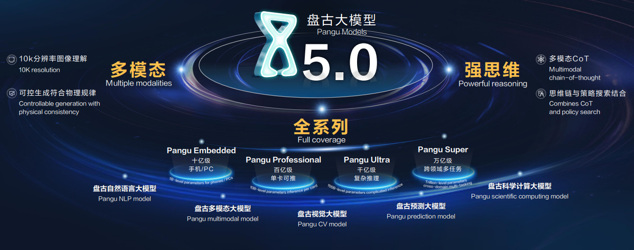 多模态理解。盘古大模型5.0能够更精准地理解物理世界,包括文本、图片、视频、雷达、红外、遥感等更多模态。在图片和视频识别方面,支持10K超高分辨率;在内容生成方面,采用STCG技术,聚焦自动驾驶、工业制造、建筑等多个行业场景。