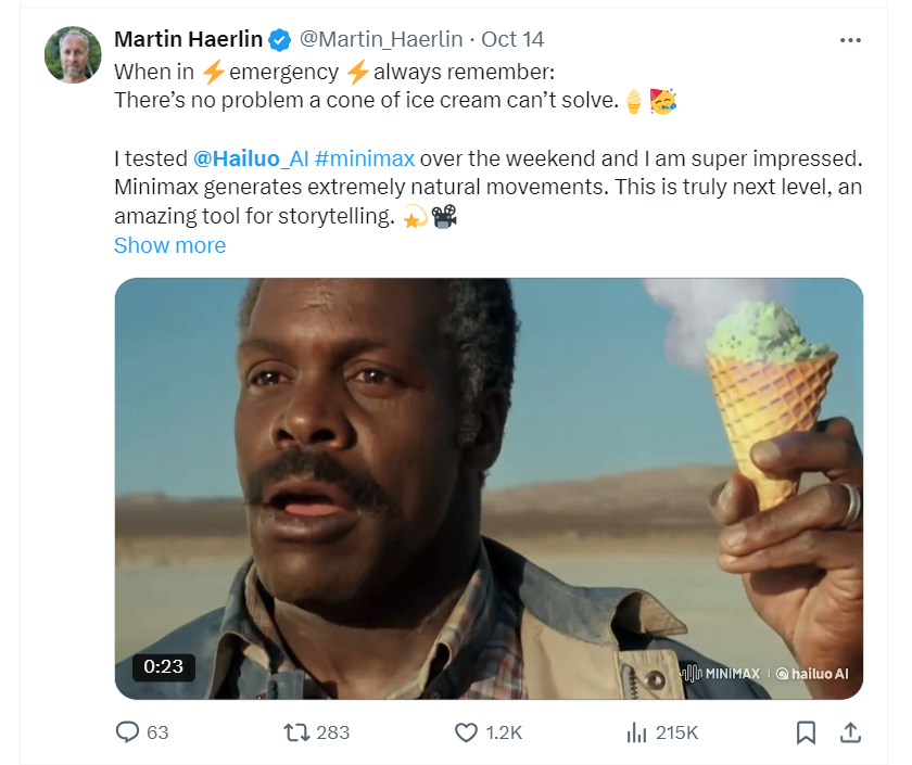 近期,MiniMax海螺AI、快手可灵AI等国产AI视频生成产品在海外迅速走红。在X等海外社交媒体上,不少用户分享了自己使用海螺AI、可灵AI生成视频的体验,AI产品生成的梗图创意视频、鬼畜画面引发了较多讨论和分享。