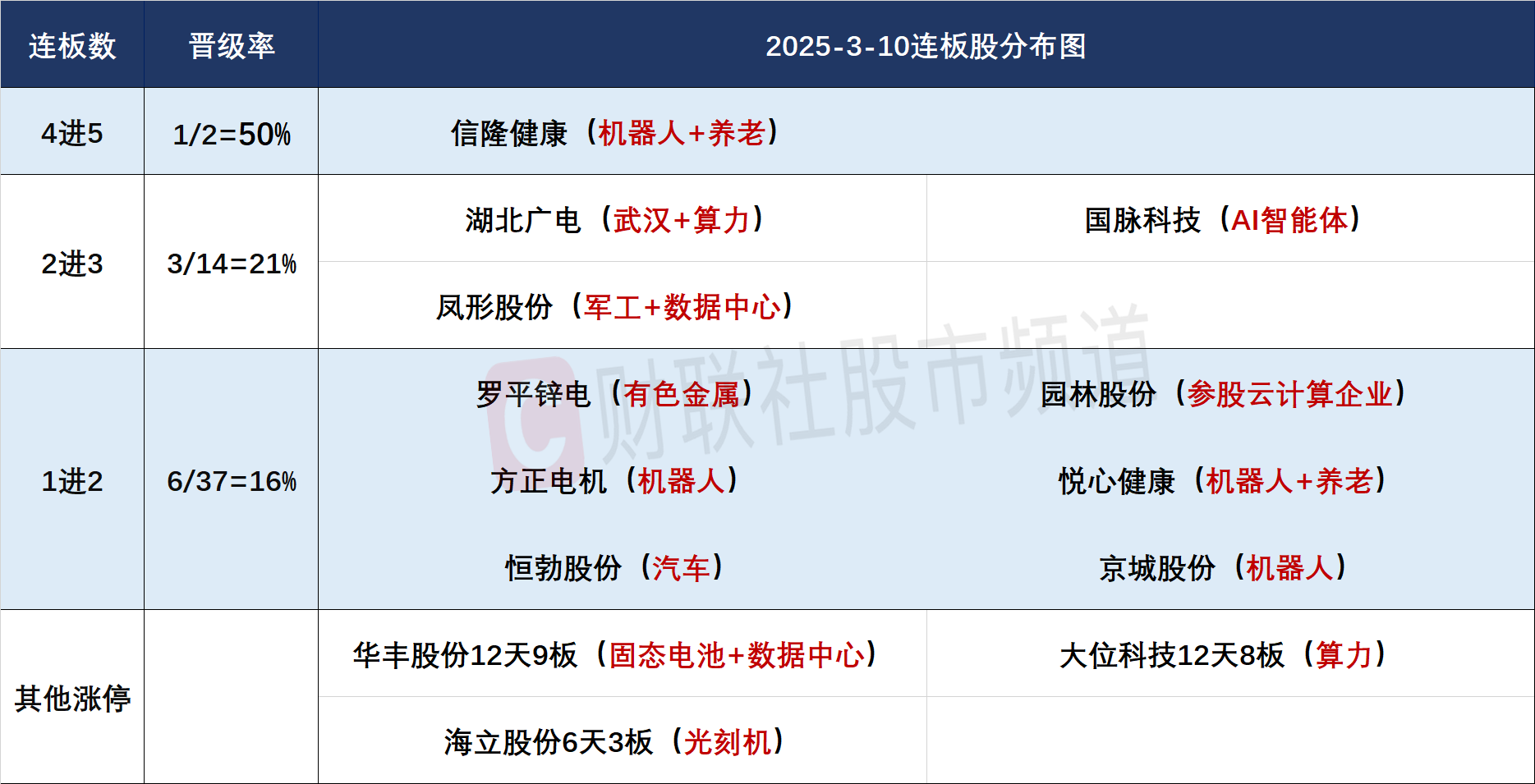 3月10日连板分析:连板率持续低迷 机器人高低切