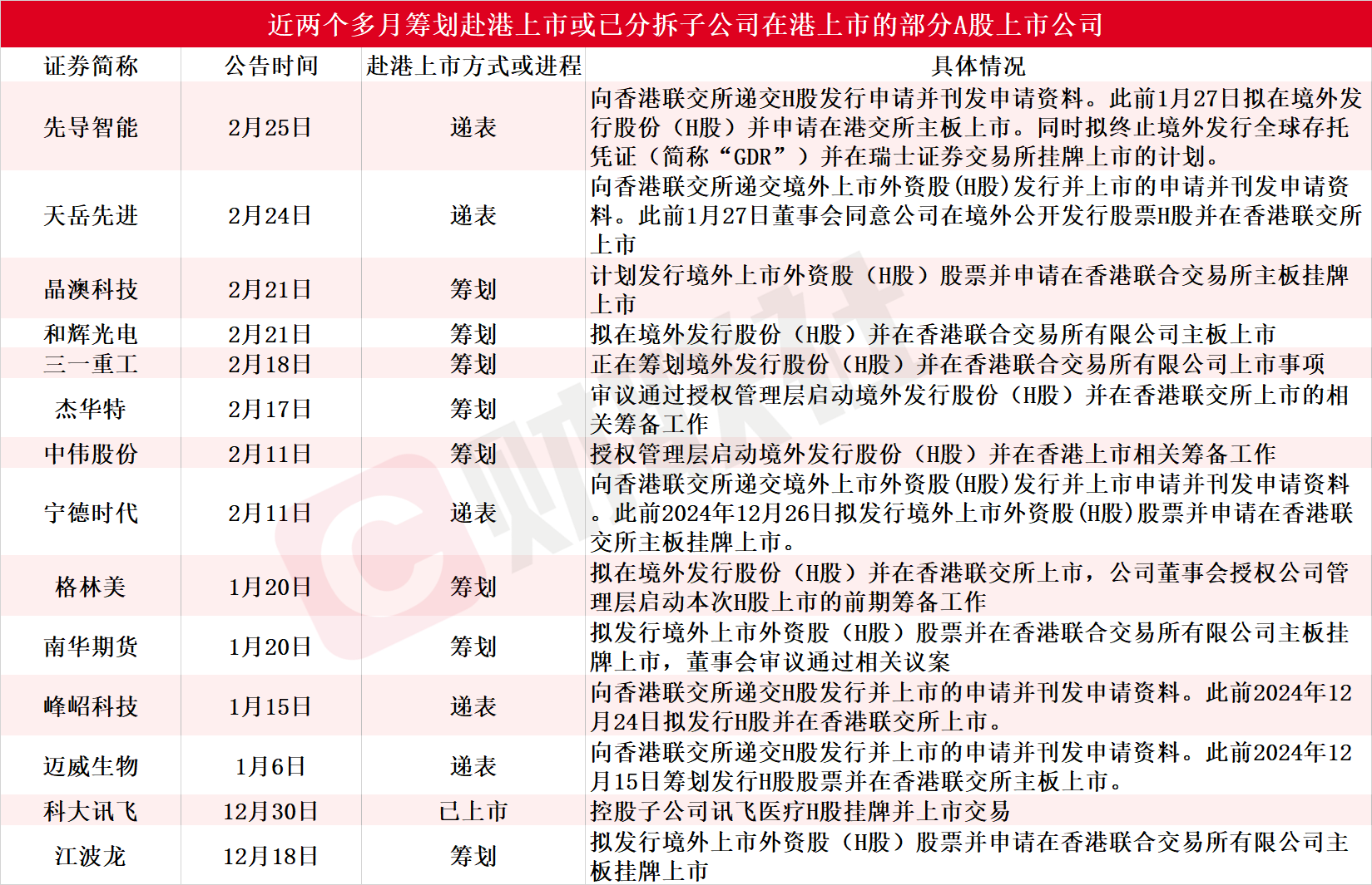 “A+H”上市持续升温!近两个多月14家A股上市公司公告筹划赴港上市或已分拆子公司在港上市 锂电龙头“宁王”在列
