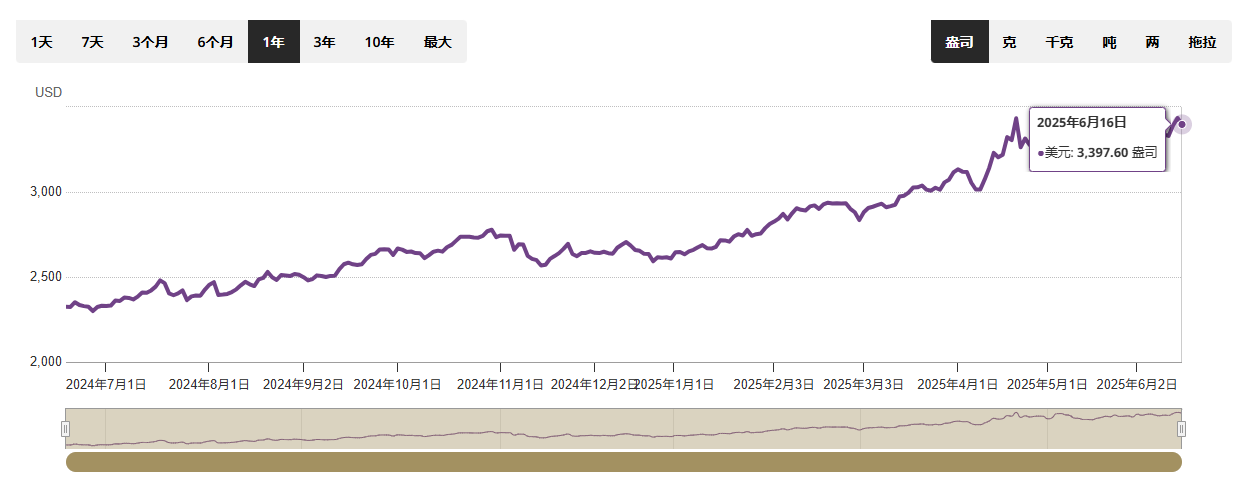相比之下,金价已连续数月刷新历史高位。现货黄金年内上涨约30%,当前报每盎司3403.09美元(4月曾突破3500美元)。世界黄金理事会央行全球负责人Shaokai Fan指出:"市场越来越不确定美元和美债市场的未来,这推动了对黄金等替代避险资产的兴趣。"