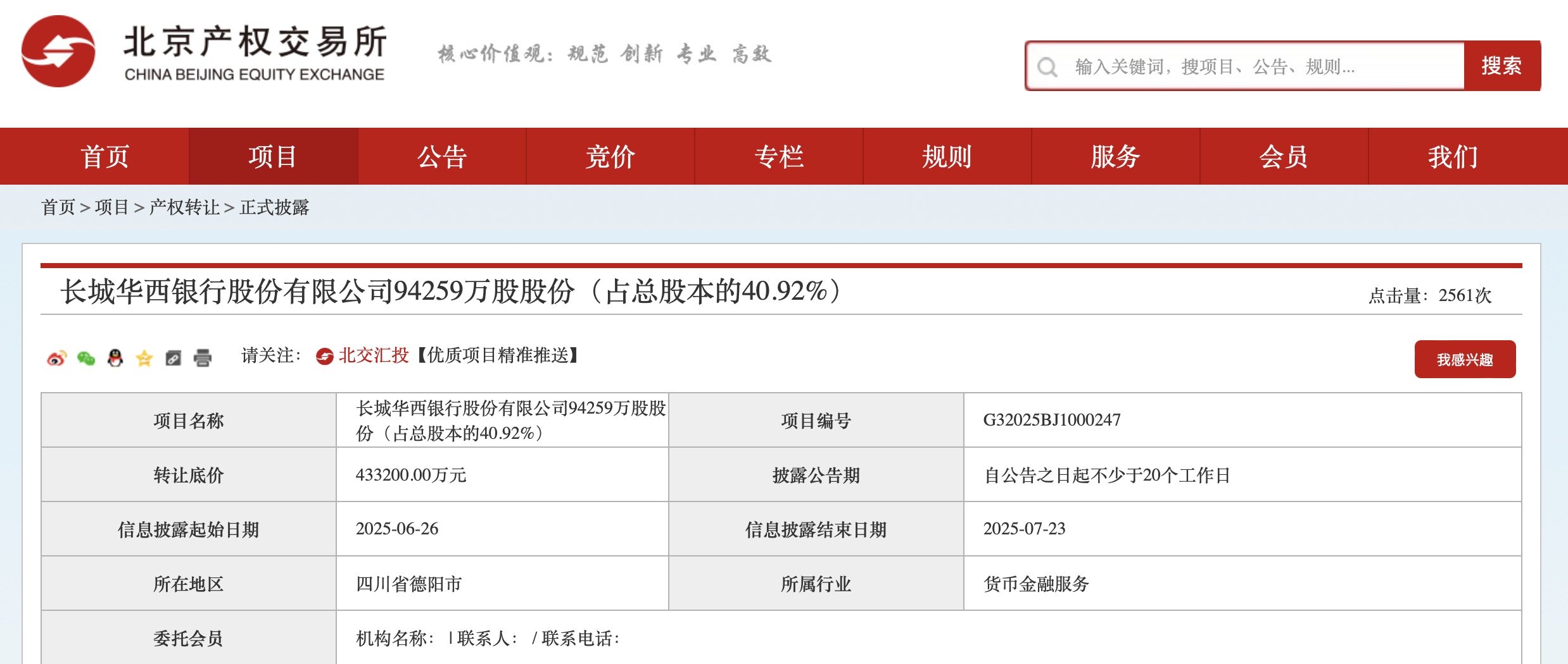今年6月26日,北京产权交易所信息显示,长城华西银行约9.4259亿股股权(占总股本的40.92%)在该所挂牌转让,转让底价达43.32亿元。据了解,此次长城华西银行股权转让方系长城资产及其一致行动人,长城资产也是该行实际控制人;此次转让将“导致企业的实际控制权发生转移”,转让完成后长城资产将不再持有该行股权。