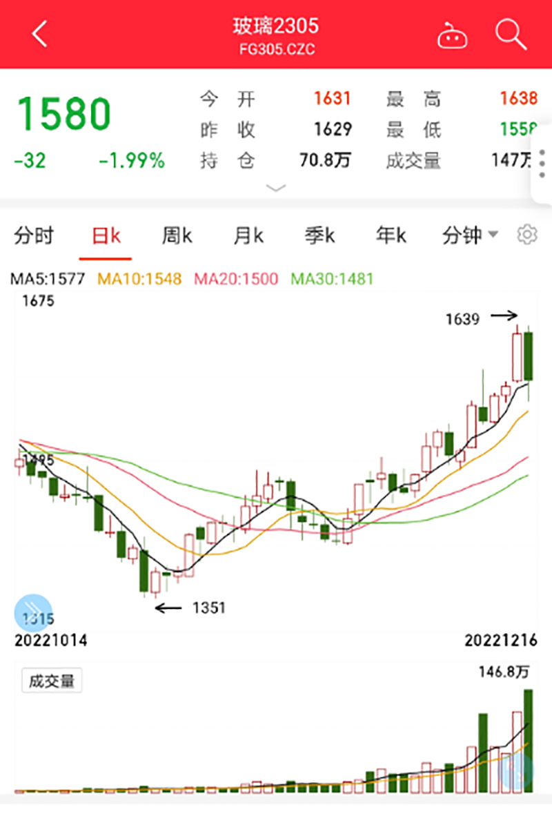 同纯碱的走势类似,玻璃期货近期亦有所反弹。截至12月16日下午收盘,玻璃主力合约当月累计涨幅约为8%,本周一度创下近4个月的新高。