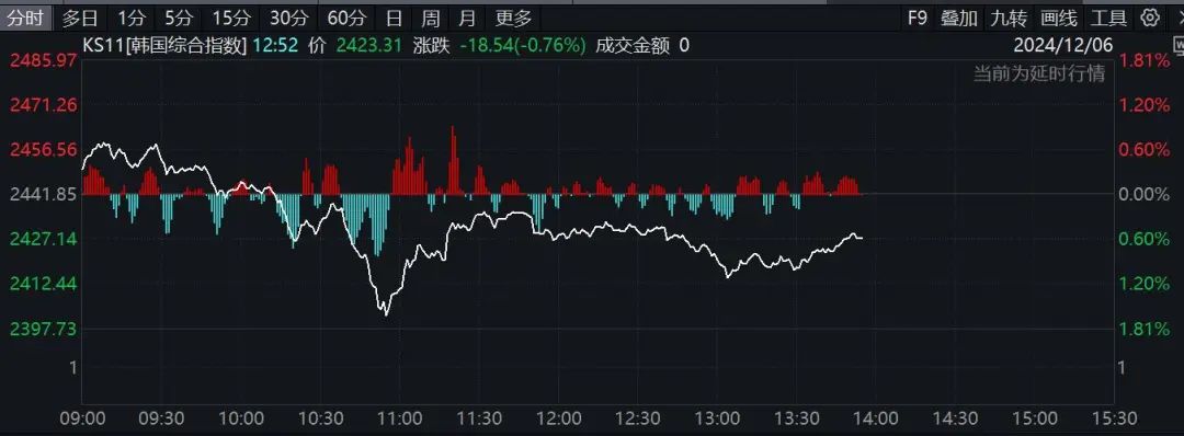 截至发稿,日经225指数下跌0.95%。韩国综合指数下跌0.76%。