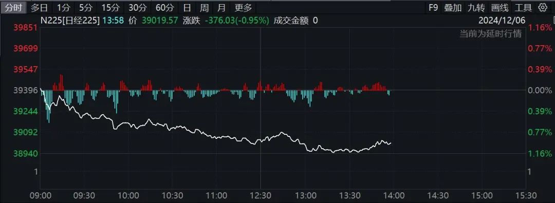 日本股市、韩国股市盘中双双跳水,日本股市午后一度跌超1%。