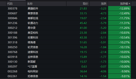 行业板块方面,TMT赛道领跌,该赛道中,计算机板块上午跌幅超过5%,鼎捷软件、赛意信息、易华录、软通动力、首都在线等多股盘中跌幅超过10%。