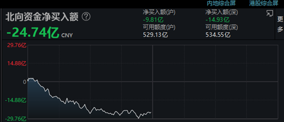 北向资金上午净卖出,半个交易日净卖出额近25亿元。