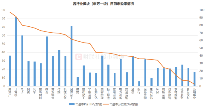 注:各行业板块(申万一级)目前市盈率及百分位情况(截至3月14日收盘)